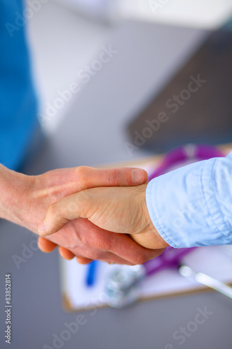 Doctor shakes hands with a patient