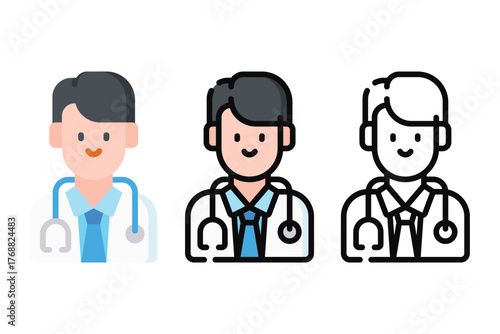 Doctor Vector and Icon Collection – Male and Female Doctor Illustrations, Medical Staff, Healthcare Professionals, Hospital Scene, and Medicine Icons Set