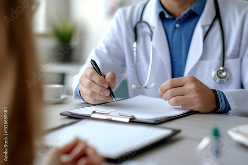 Doctor Writing Medical Notes Patient Healthcare Consultation Clinic Appointment Pen Form Paper