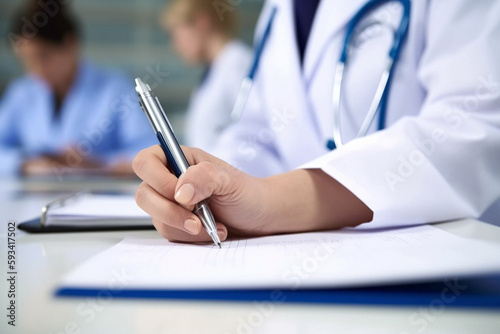 business, pen, hand, office, writing, document, paper, doctor, businessman, contract, signing, desk, working, businesswoman, table, closeup, paperwork, signature, person, write, medicine, patient, health care, health, medicals, stethoscope, nurse, clinic, professional, uniform