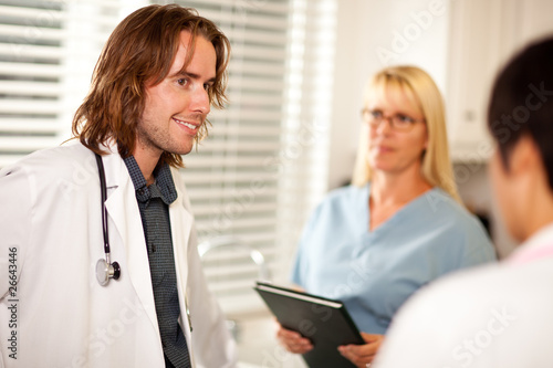 doctor, girl, man, male, female, cute, hospital, talking, discussion, nurse, paediatrician, pretty, woman, young, care, health, health care, health care, medicals, medicine, smile, specialist, student, team, uniform, 20s, 30s, three, beautiful, blond, caucasian, clinic, emergency, 4, friendly, goggles, group, hair, happy, help, labcoat, laboratory, lady, pink, portrait, scrub, stethoscope, vertical, white
