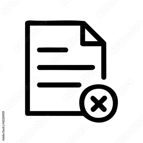 document, icon, close, symbol, error, file, rejection, cancel, signs, paperwork, delete, cross, form, page, application, wrong, mistake, exit, no, incorrect, interface, reject, alert, deny, fail, block, notice