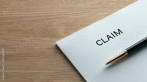Document Titled CLAIM on a Light Wood Desk With a Pen in a Formal Office Setting