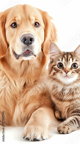 dog, cat, posing, studio, white, background, pet, friendship, animal, friends, domestic, cute, mammal, canino, felino, together, happy, love, portrait, adorable, breed, pet, puppy, looking, young, isolated, gold, retriever, doggy, little, funny, face, playful, purebred, cat, small, nobody, innocence, kitten, paw, fluffy, companion, comfort, fur, nature, trust, family