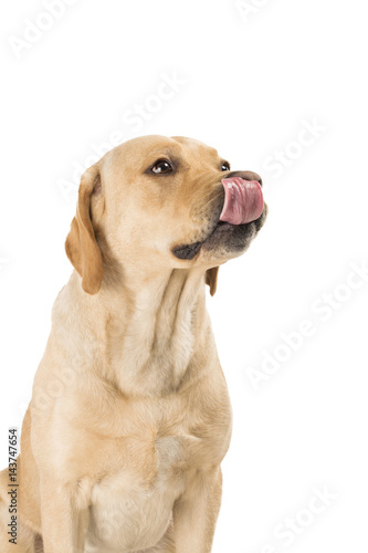 animal, breed, brown, canino, cute, dog, domestic, head, isolated, labrador, lick, mammal, pet, puppy, purebred, retriever, shot, tongue, white, young