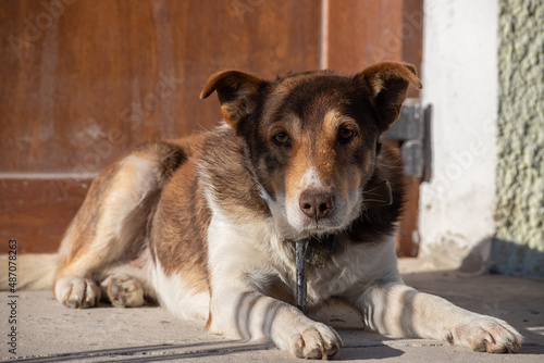 dog, guard, home, chain, young, mammal, cute, canino, brown, nature, puppy, animal, portrait, domestic, friends, pet, white, sad, black, funny, beautiful, adult, village, summer, security, small, animal, yard, background, rural, outside, chained, countryside, friendship, fur, head, mongrel, lonely, lying, terrier, staring, alive, bad, bodyguard