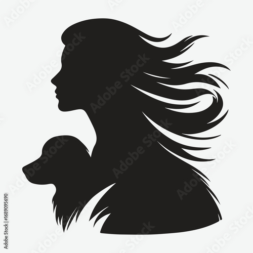 dog, owner, woman, walking, silhouette, vector, pet, companion, animal, leash, stroll, canino, female, human, friendship, bond, loyal, domestic, park, exercise, activity, outline, black, white, minimal, flat, illustration, training, lifestyle, human relationships, graceful, elegant, motion, partnership, nature, simple, strong, harmony, connection, modern, stylish, iconic, symbolic, timeless, casual attire, peaceful, active