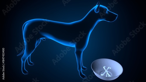 Dog salivation in blue background anatomy. 3d illustrations