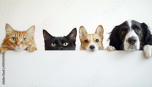 dog, cat, pet, cute, funny, head, white, signs, over, poster, cover, behind, up high, studio, header, felino, signs, isolated, eye, canino, hanging, holding, looking, paw, peeking