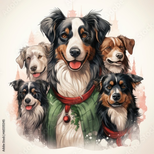 Dogs And Cats Spreading Holiday Cheer Festive Holiday, Cartoon Illustration Background