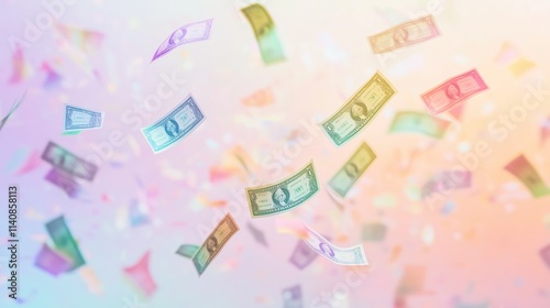 dollar, banknote, rain, falling, sky, pastel, light, background, money, wealth, finance, currency, cash, rich, economy, business, prosperity, fortune, investment, financial, abundance, success, freedom, growth, paper, bill, luxury, dream, dreamer, opportunity, floating, counting, rising, future, elegant, glowing, colourful, vibrant, rainbow, cloud, glimmer, glow, rainy, concept, creation, dreamlike