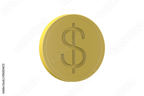 Dollar sign engraved on golden coin isolated on white, 3d illustration