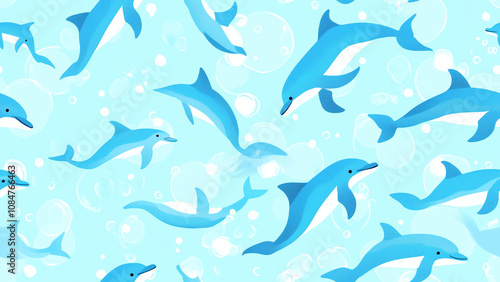 Dolphin Silhouette Pattern on a Pastel Blue Tiled Background