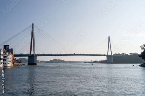 city landscape, landmark, bridge, architecture, skyline, sightseeing, south korea, bridge, boat, asia, island, nature, sky, sea, tour tourism, city, cruise, suspension bridge, shoreline, building, beach, background, port, coast, seagull, east asia, shore, korean, water, transportation, korea, panorama, blue, travel, landscape, ocean, sunset