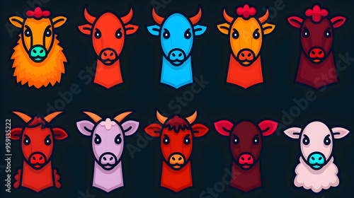animal, domestic, editable, icon, outline, stroke, web, cat, cartoon, vector, dog, set, illustration, icon, funny, baby, animal, cow, head, pet, fun, character, pig, rabbit, art, tiger, fox, zoo, wild, collection, design
