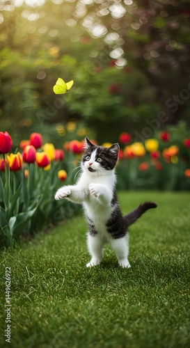 cat, domestic, playing, outside, garden, home, green, suburban, animal, pet, felino, mammal, nature, grass, backyard, outdoors, playful, cute, cat, kitten, environment, summer, day, sunny, plant, foliage, happy, joy, fun, active, young, beautiful, adorable, curious, portrait, closeup, looking, relaxing, resting, stretching, exploring, jumping, running, sitting, lying, watching, sunlight, peaceful, calmness