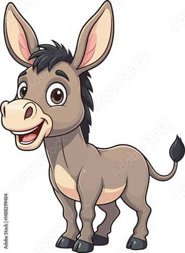 donkey, clip art, illustration, animal, farm animal, mammal, equine, grey, grey, cute, cartoon, standing, full body, isolated, farm, farm animal, agriculture, rural, countryside, nature, wildlife, character, funny, friendly, happy, simple, drawing, vector, graphic, image, art, design, clip art, tail, hoof, looking, portrait