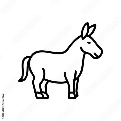 Donkey icon standing, represents strength and reliability, black outline, modern design
