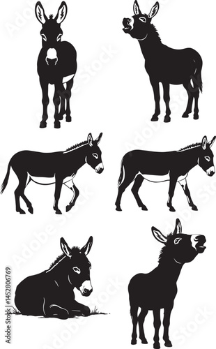 donkey, silhouette, bundle, animal, vector, logotype, clip art, farm, design, graphic, illustration, icon, wildlife, nature, template, digital, outline, shape, style, minimal, isolated, flat, profile, editable, monochrome, pack, pet, creative, print, cut, file, shirt, decal, art