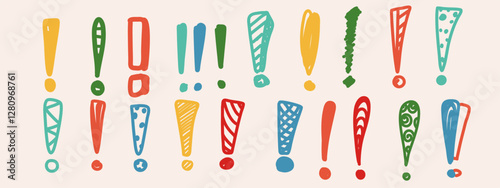 Doodle exclamation mark set isolated. Hand drawn scribble idea symbol collection. Vector hand written signs