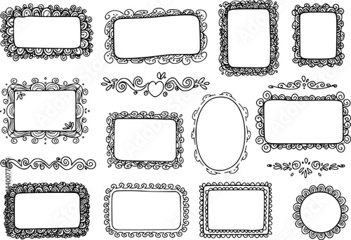 Doodle Frames Set, Hand Drawn Borders, vector set