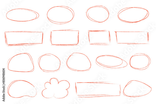 Doodle pencil drawn oval circles. Red grunge ovals and circles for highlighting