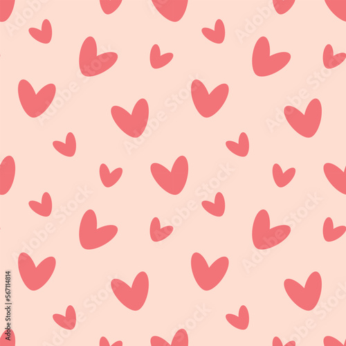 Doodle red heart seamless pattern. Happy Valentine's Day banner. Vector illustration.
