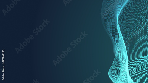 Dot green wave light screen gradient texture background. Abstract technology big data digital background. 3d rendering.