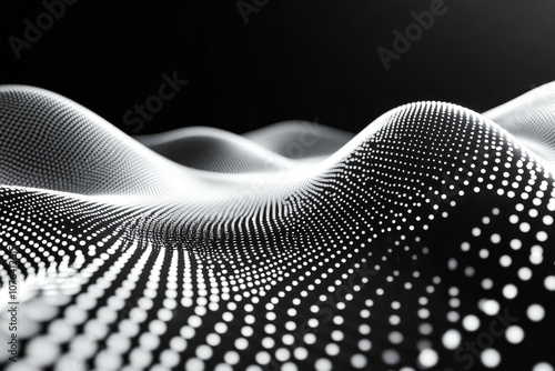 Dots and Lines Wave Pattern, Minimalist Modern Art in Black and White