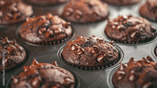 Double Chocolate muffins in the pan homemade baked close up selective focus