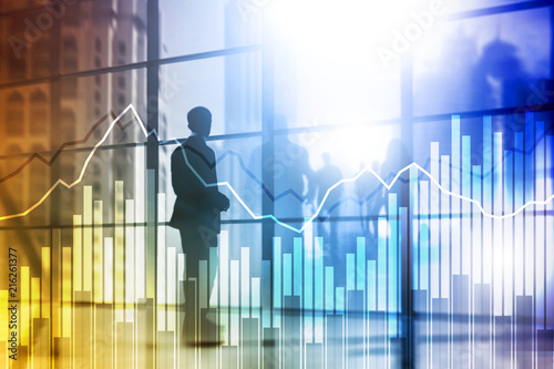Double exposure Financial graphs and diagrams. Business, economics and investment concept.