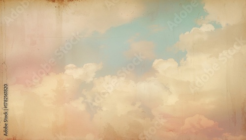 Double exposure of vibrant clouds and sky overlaid with a paper texture, serves as a backdrop for creative layouts