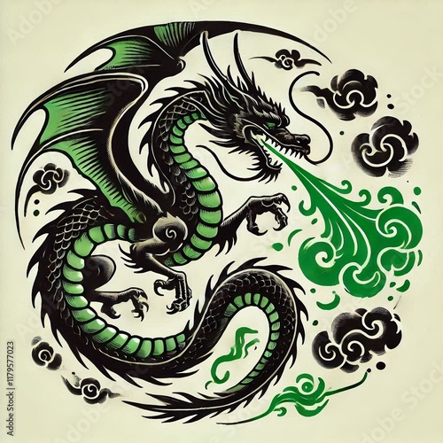 dragon, tattoo, vector, china, illustration, animal, pattern, symbol, art, design, asia, fantasy, snake, decoration, colours, mythology, reptile, culture, ancient, cartoon, oriental, east, japanese, nature, power