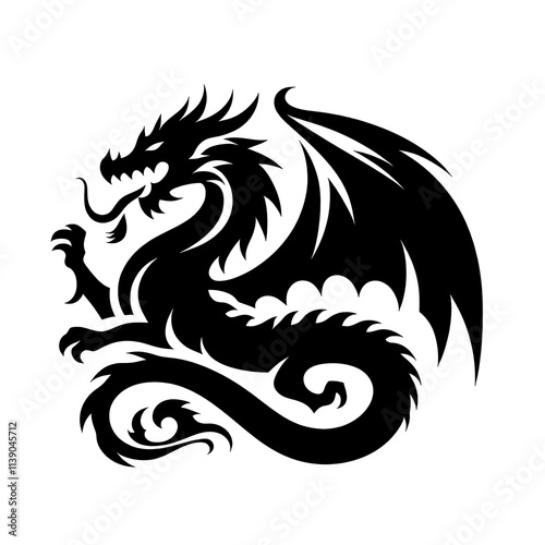 dragon Vector Illustration, dragon tattoo vector, Dragon silhouette vector black and white