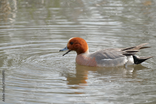 Drake duck Wigeon close-up on the background of the pond. wild ducks