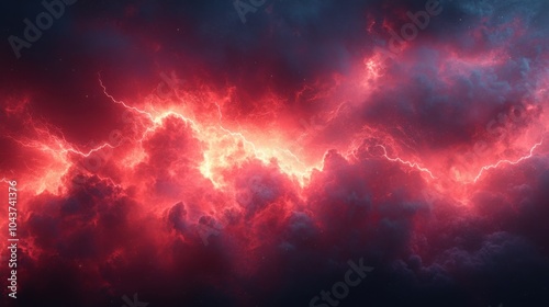 Dramatic Abstract Red Lightning Storm Cloud Background Ideal for Use in Digital Art, Graphic Design, and Atmospheric Themes