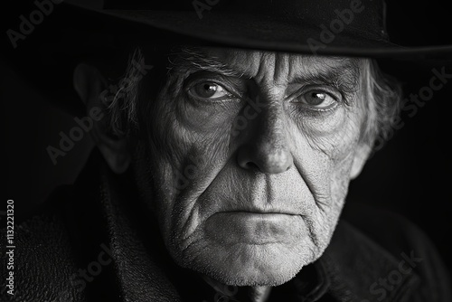 old, man, portrait, dramatic, black, white, expression, gaze, emotion, serious, textured, face, deep, shadow, light, monochrome, character, wrinkle, age, intensity, thoughtful, rugged, hat, mystery, closeup, reflective, storytelling, eye, contemplative, sombre, strong, vintage, classic, art, photo, detail, striking, timeless, silhouette, natural, human, realism, beauty, solitude, style