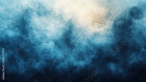 Dramatic blue and gray clouds fill the sky at dusk, creating a moody atmosphere over the horizon in a serene natural landscape