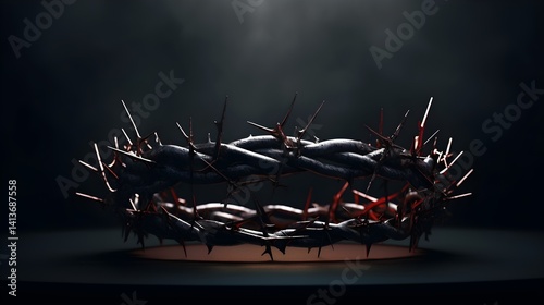 Dramatic Close up of a Crown of Thorns Religious Symbol Dark Background