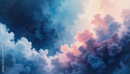 cloud, digital, scene, dusk, artwork, dramatic, serene, wonder, pattern, layer, celestial, calmness, visual, magical, aethereal, surreal, dreamy, aesthetic, imagination, high-coloured, inspiration, exploration, twilight, dynamic, peaceful, atmosphere, stunning, canvas, fluffy, vibrant, fantasy, creativity, weather, panorama, horizon, ambient, enchanting, whimsical, dimension, captivating, composition, illustration, light, evening, sunset, sky, blue, landscape