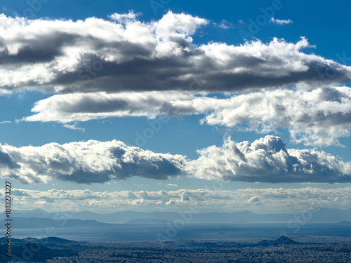 cloud, cumulus, sky, athens, attica, greece, panorama, city, landscape, mountain, city landscape, basin, cloudscape, hellas, horizon, view, mediterranean, viewpoint, weather, atmosphere, blue, white, dramatic, moody, nature, outdoors, travel, tour tourism, hillside, vale, layer, haze, terrain, slope, winter, tranquil, calm, vista, nobody