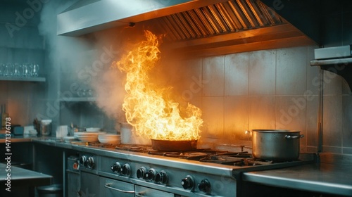 fire, flames, kitchen, cooking, stove, hazard, danger, emergency, burn, hot, pan, cook, eatery, chef, food, heat, smoke, equipment, steel, flammable, cooker, burn, spark, explosion, crisis, inferno, blaze, boiling, accident, gas, combustion, lit, oven, commercial, industrial, professional, appliance, metallic, stainless, hood, tile, backsplash, utensil, disaster, risk, protection, safety, destruction