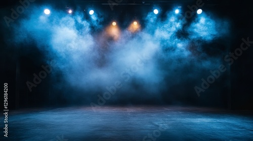 stage, lighting, smoke, fog, blue, orange, atmosphere, performance, theatre, concert, effect, background, dramatic, illumination, artistic, ambience, entertainment, music, show, event, empty, space, design, creativity, visual, aesthetic, theatrical, preparation, spotlight, production, scene, contrast, environment, setup, art, abstract, light, technique, glow, beauty, energy, dynamic, night, shine, colours
