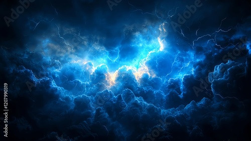 Dramatic Storm Clouds with Electric Blue Light and Lightning Strikes