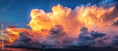 Dramatic summer sunset clouds showcasing vibrant colors and captivating textures in the sky during a warm evening.