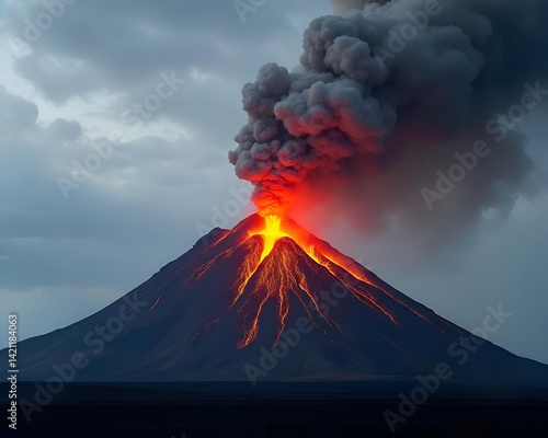 Dramatic Volcano Eruption - Lava and Smoke Explosion in Nature Landscape.