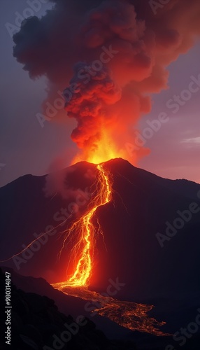 volcano, eruption, lava, nature, powerful, mountain, volcanic, landscape, fire, molten, dramatic, natural disaster, geology, hazard, smoke, explosion, energy, environment, hot, heat, flow, scenery, sky, sunset, dusk, glow, earth, danger, intense, formation, terrain, destruction, majestic, rock, crater, phenomena, scarey