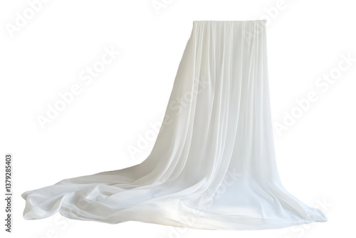 Draped Sheer White Fabric, Elegant Flowing Texture, Isolated Background