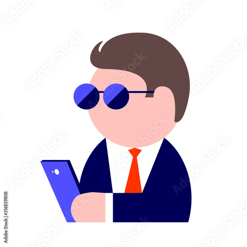businessman, business, man, attaching, vector, illustration, smartphone, logotype, icon, symbol, emblem, isolated, flat, character, sunglasses, employee, modern, manager, tied-up, human, poster, print