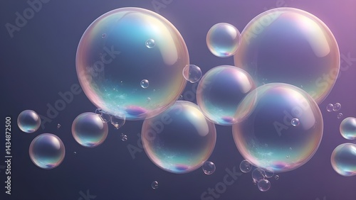 Dreamy Iridescent Soap Bubbles Floating on Gradient Background